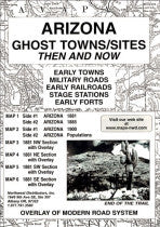 Ghost Towns and Ghost Sites are yours to rediscover as you peruse and study the maps in this collection. All maps included in the Ghost Town series are reproduced from authentic documents on file from various archival collections such as the National Archives. Each packet, measuring 6.5″ by 9.5″, contains maps (18″ x 24″ trimmed) which were selected for quality, age and location details. What makes these packets so unique is the inclusion of a transparent overlay printed from a modern road map. By placing the acetate overlay on top of the corresponding historical map, it quickly becomes apparent that this techniques is a valuable asset in assisting with the location of favorite places. Please be reminded that many early place names that appear may not have been an actual town site. Some early postal services may have been located in a ranch house, stage station or a mining camp. Additionally, some historians have a difference of opinion concerning names and their exact locations. Readers should be reminded of the limitations of the early surveyors who most likely used primitive equipment and limited cartographic knowledge. The compiler wishes to remind the readers of the responsibility of knowing the rules when searching on private, State and Federal lands. Violation of rules is in poor judgment. Good Hunting!