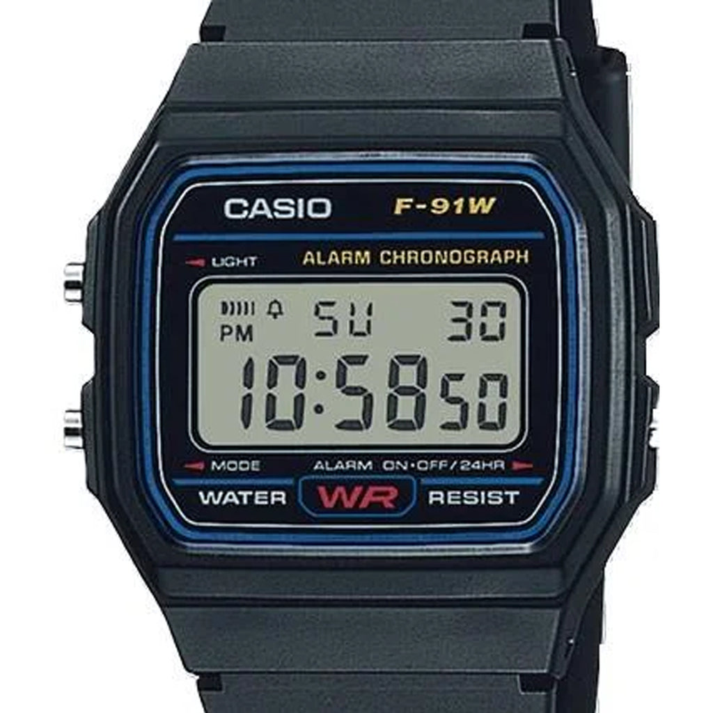 The Casio F-91W-1 is an iconic digital watch that has remained a bestseller since 1989. Its ultra-thin 8.5mm case and lightweight resin construction deliver all-day comfort, while practical features like a stopwatch with split-time capability, dual alarms, and LED backlight handle everyday tasks. Water-resistant and powered by a 7-year battery, this classic timepiece combines reliable Casio engineering with timeless design—all at an exceptional price point.