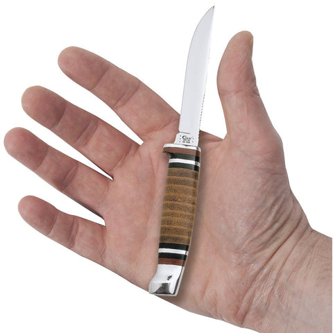 The X-Small Leather Hunter is a part of Case's Leather Hunters family. This handsome yet rugged collection is designed to stand up to years of outdoor use. This fixed knife features a concave ground Clip blade and a polished leather handle for secure grip. The Clip blade is commonly used as a multi-purpose blade and preferred for detail work. The X-Small Leather Hunter is ideal for trout, rabbit, and other small game. This durable fixed knife is constructed with Case Tru-Sharp stainless steel which is a special high-carbon steel that helps the blades hold an edge longer than conventional steel. It also offers extraordinary blade strength and corrosion resistance. Comes with a genuine leather sheath. This fixed blade knife is perfect for the outdoors, hunting, or hiking. Comes conveniently packaged in a box. Made in Bradford, PA, USA from domestic and imported materials.